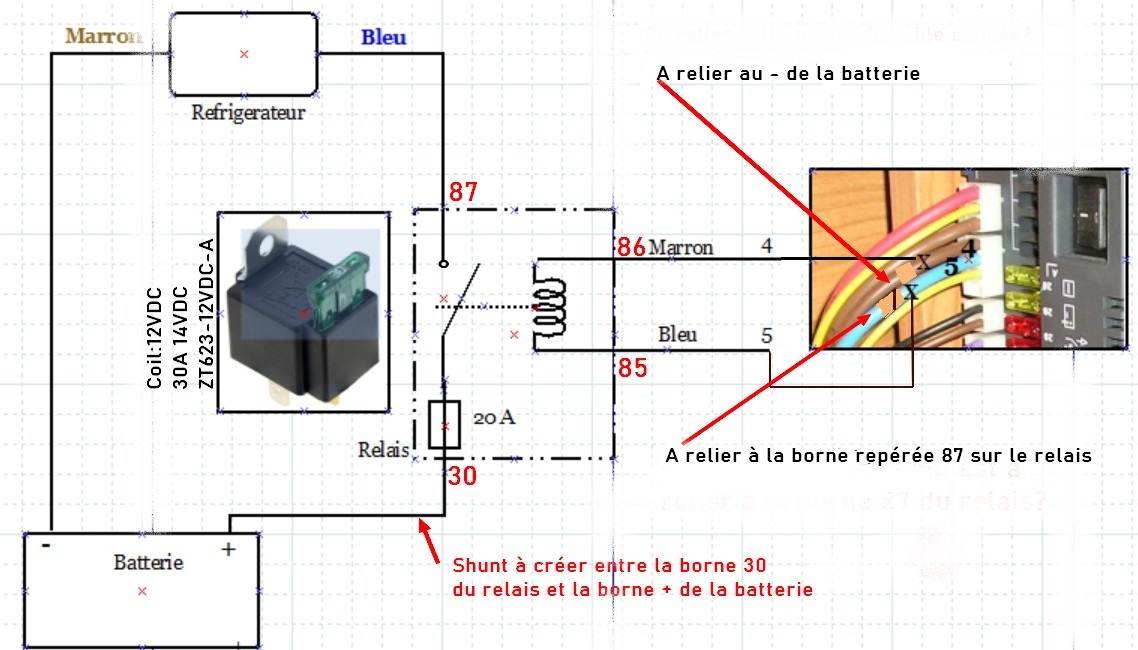 A partir du schéma de JC5749, que j'ai retranscrit (voir ci-contre) pour qu'il me "parle mieux" et peut-être à d'autre aussi... Pour le choix de la section des câbles voir schéma ci-après: